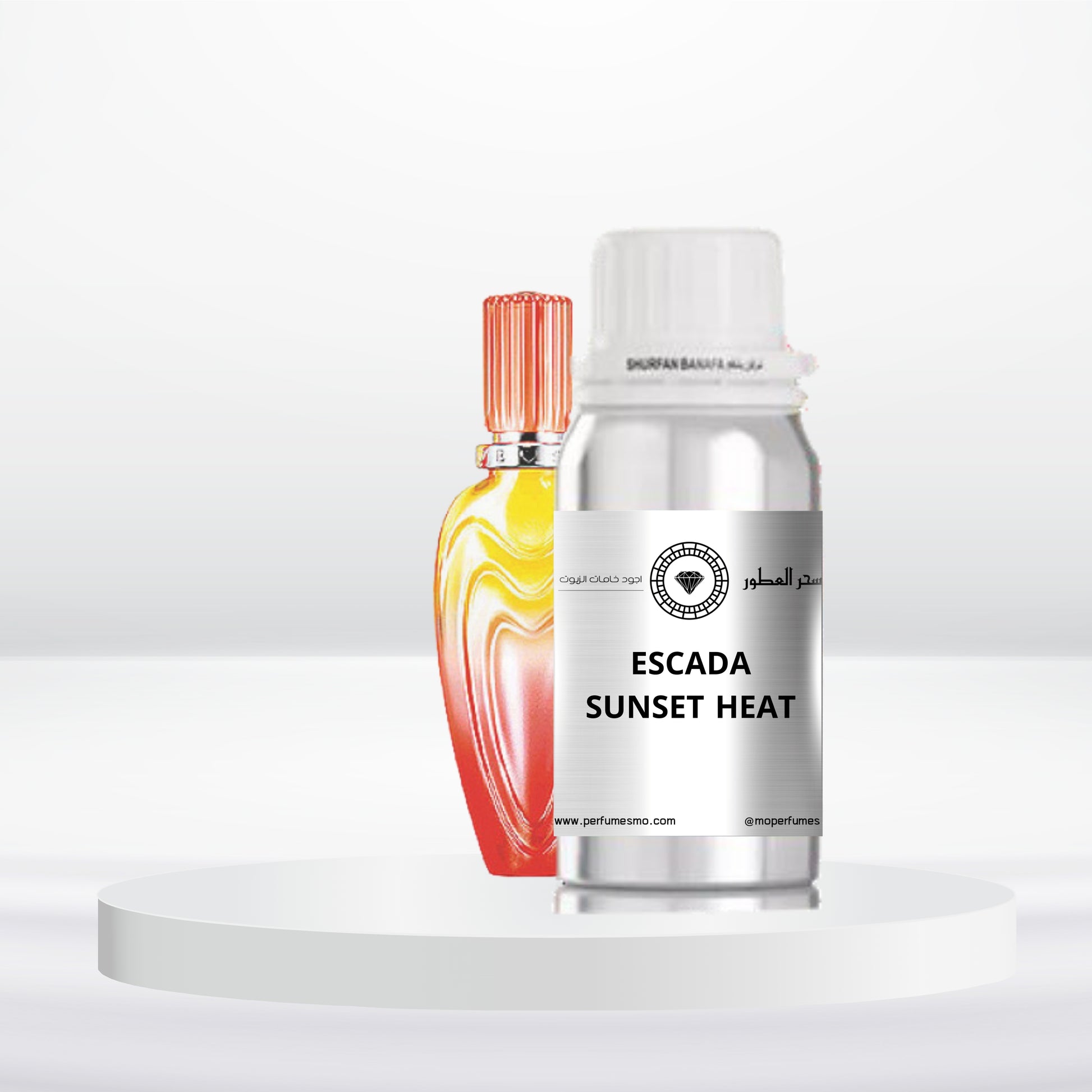 Escada Sunset Heat features a blend of tropical fruits like pineapple, peach, and grapefruit, with a floral heart of peony and jasmine, resting on a warm base of sandalwood and musk.