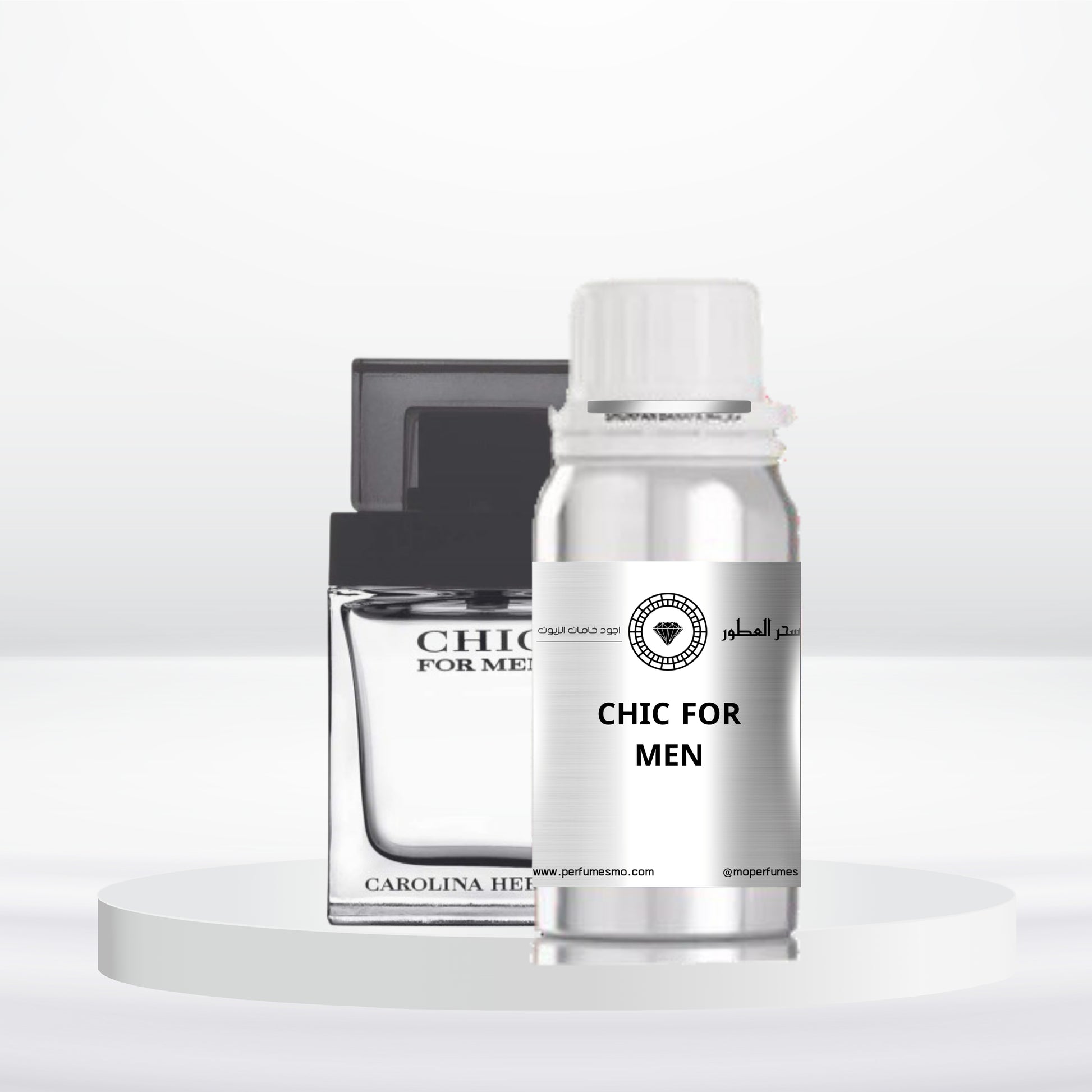 عطر CHIC FOR MEN يحتوي على مكونات عليا من الليمون، البرغموت، والخزامى، مع قلب من الزهور، خشب الأرز، والفلفل، وقاعدة من العنبر، المسك، والباتشولي.