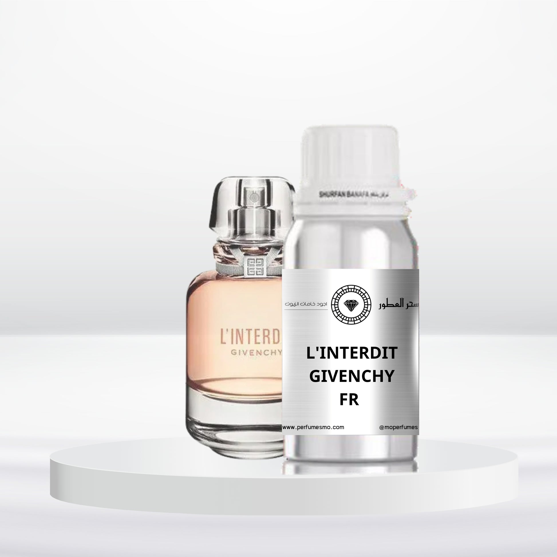 عطر L'Interdit Givenchy يتميز بمزيج أنثوي جريء من زهر البرتقال، الكمثرى، والبرغموت، مع قلب من مسك الروم، الياسمين، والفانيليا، وقاعدة دافئة من الباتشولي، نجيل الهند، والأمبروكسان.