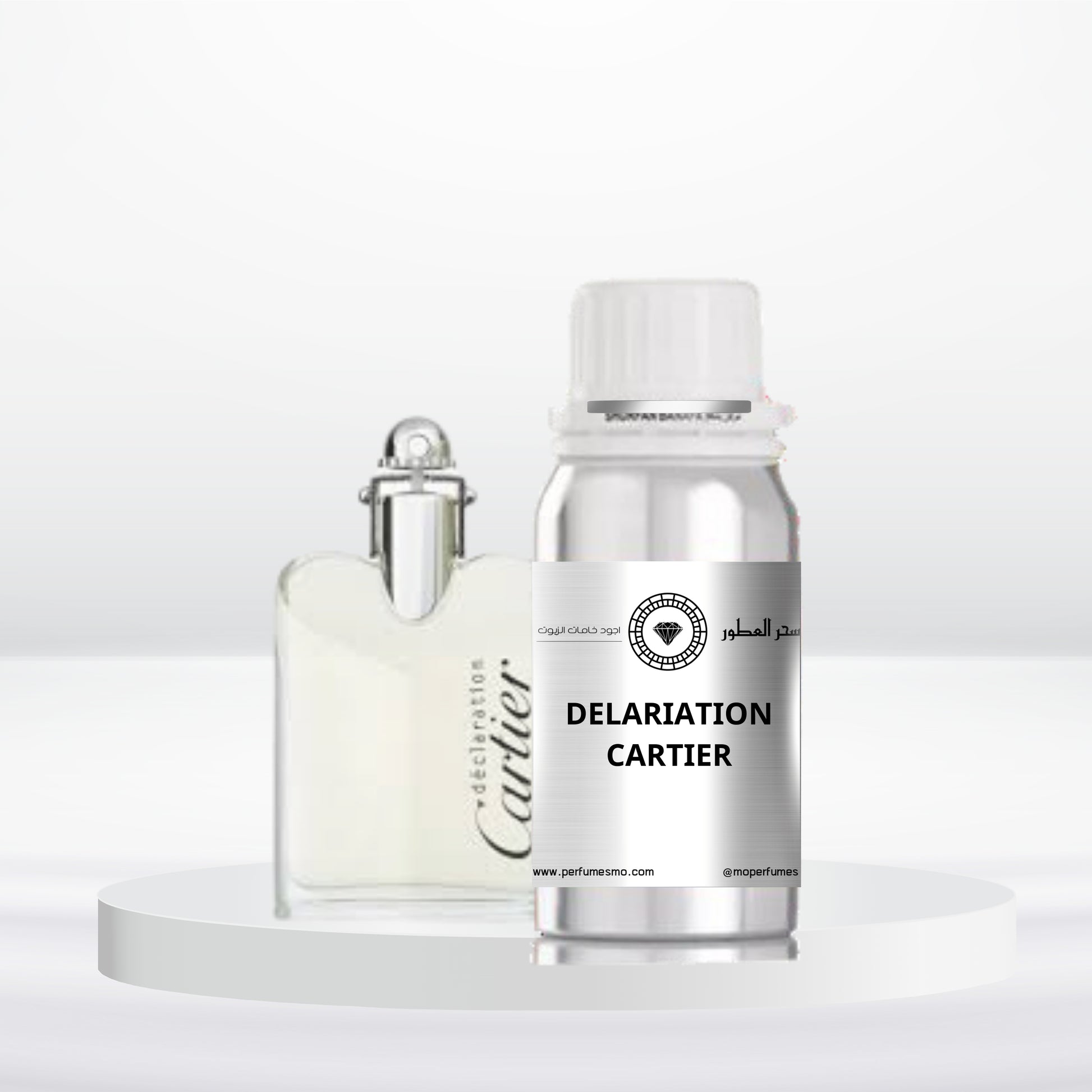 عطر DECLARATION CARTIER يحتوي على مكونات عليا من البرغموت، البرتقال، والليمون، مع قلب من الورد، التوابل، والزعفران، وقاعدة من خشب الأرز، المسك، والعنبر.
