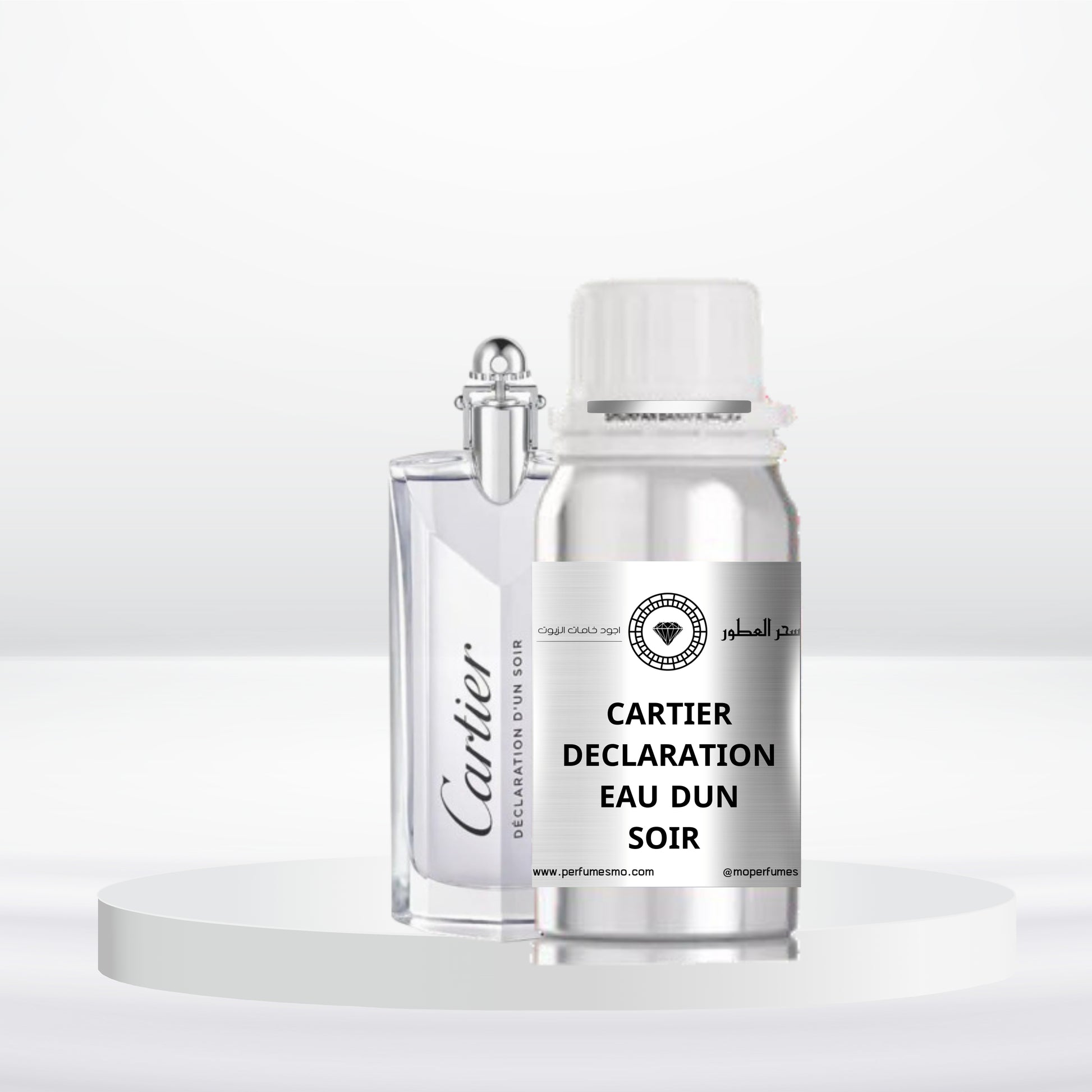 عطر CARTIER DECLARATION EAU DUN SOIR يحتوي على مكونات عليا من البرغموت، الليمون، والكمثرى، مع قلب من الورد، التوابل، والياسمين، وقاعدة من خشب الأرز، العنبر، والمسك.