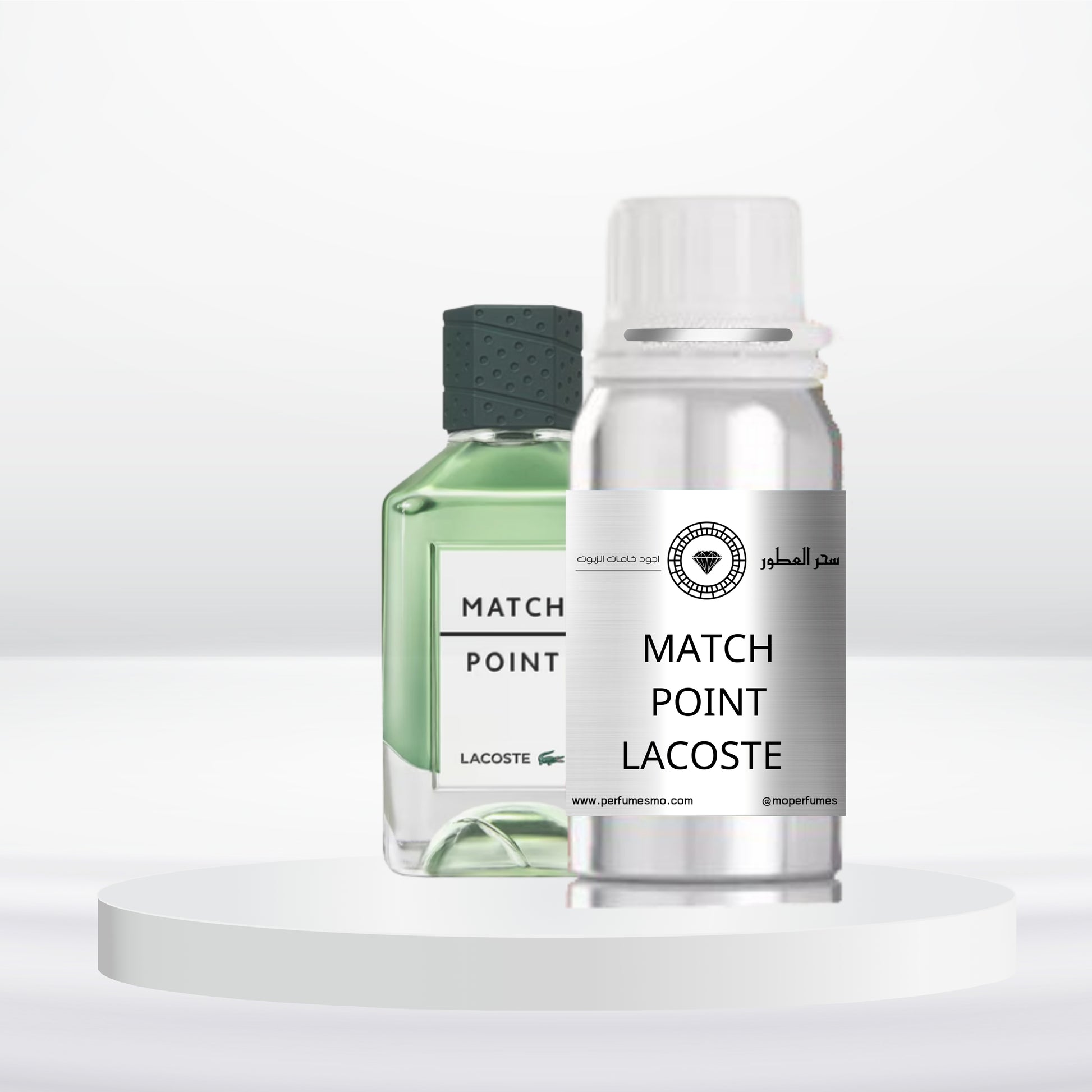 عطر Match Point Lacoste يفتتح بنفحات الريحان والجريب فروت، يتوسطه قلب من إبره الراعي (إبرة الراعي) وخشب الكشمير، ويستقر على قاعدة من نجيل الهند والباتشولي.