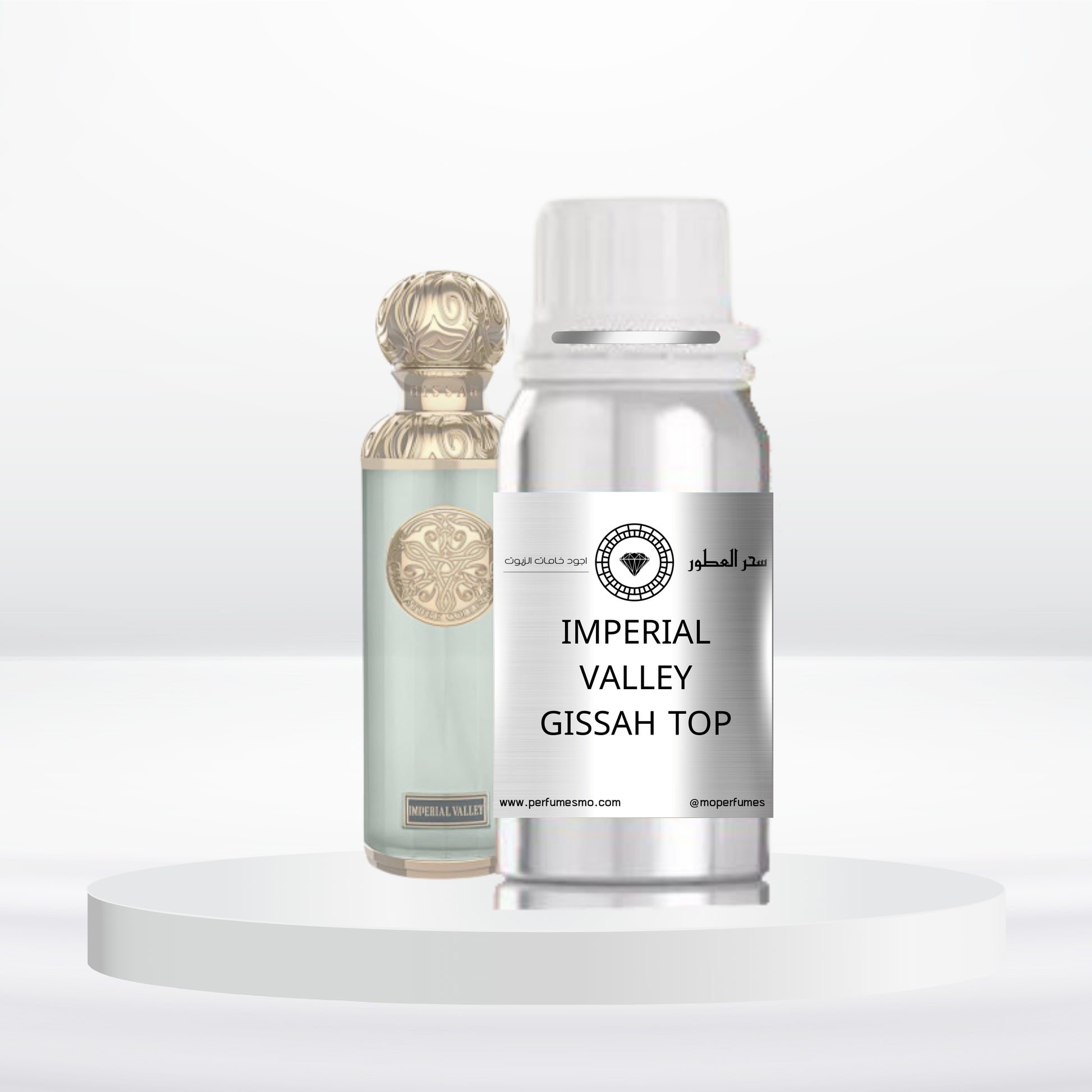 عطر **Imperial Valley** من **Gissah** يحتوي على مكونات رئيسية تشمل البرغموت والليمون في المقدمة، بينما القلب يتضمن الورد والياسمين، والقاعدة تحتوي على خشب الصندل والعنبر.