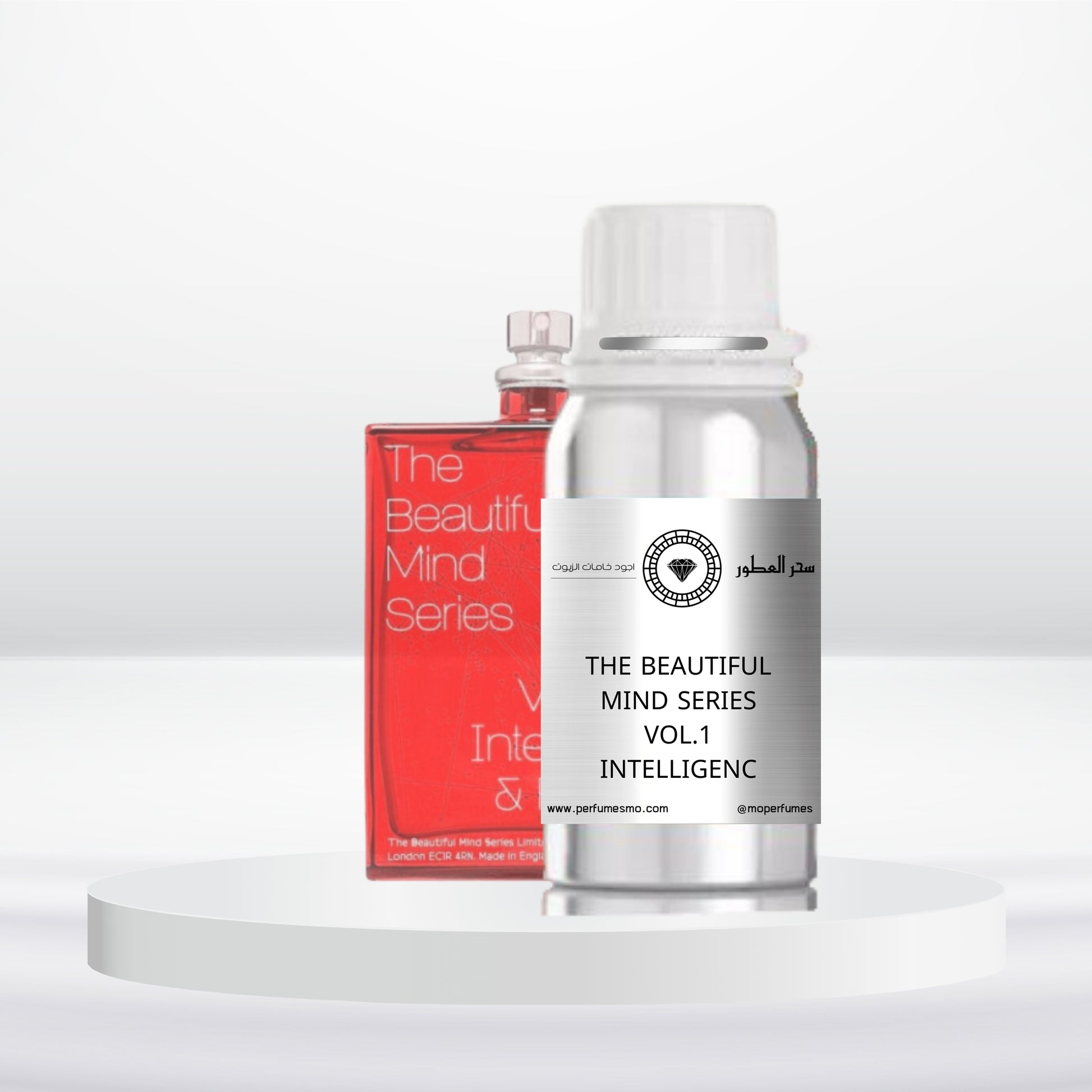 The Beautiful Mind Series Intelligence & Fantasy features a blend of mango, bergamot, and jasmine with warm woody touches of sandalwood and cedar, creating a fresh fruity-floral scent.