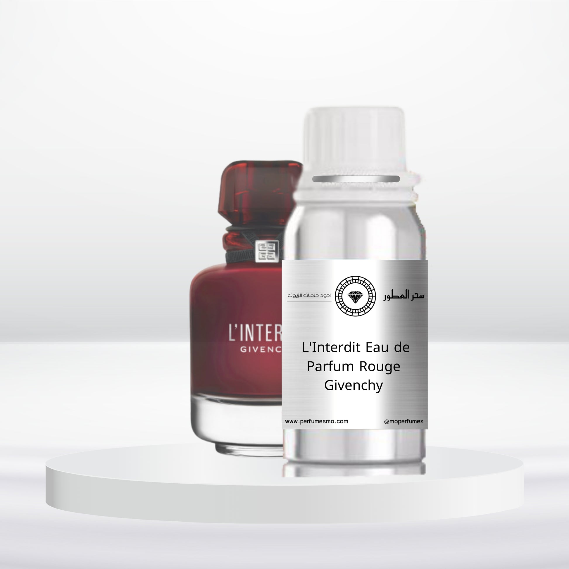 عطر L'Interdit Eau de Parfum Rouge Givenchy يتميز بمزيج حار وجريء من الزنجبيل، البرتقال الأحمر، والفلفل الحار، مع قلب زهري من مسك الروم والياسمين، وقاعدة دافئة من خشب الصندل، الباتشولي، والفيتيفر.