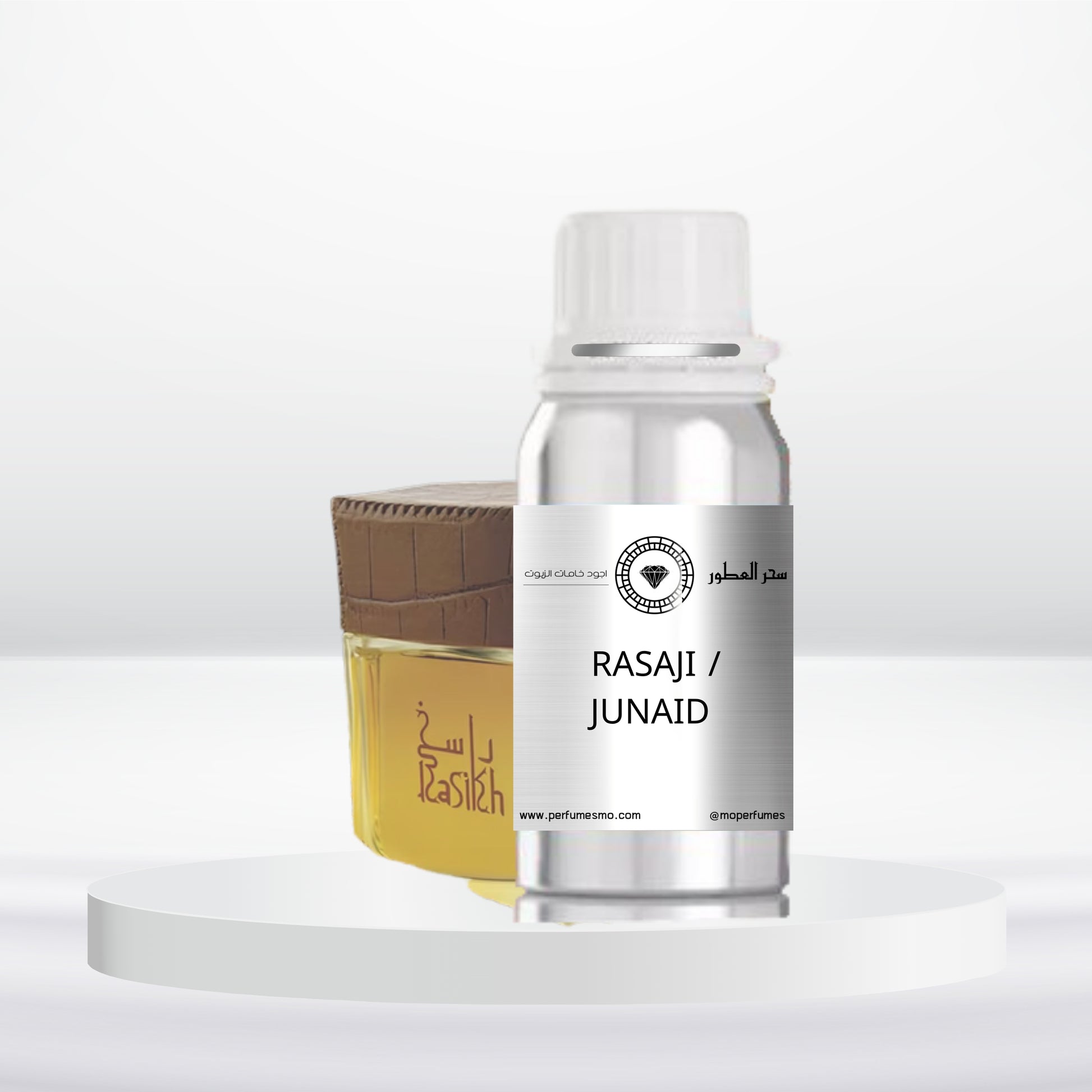 RASAJI by Junaid features a blend of rose, oud, and musk, offering an elegant and deep oriental scent.