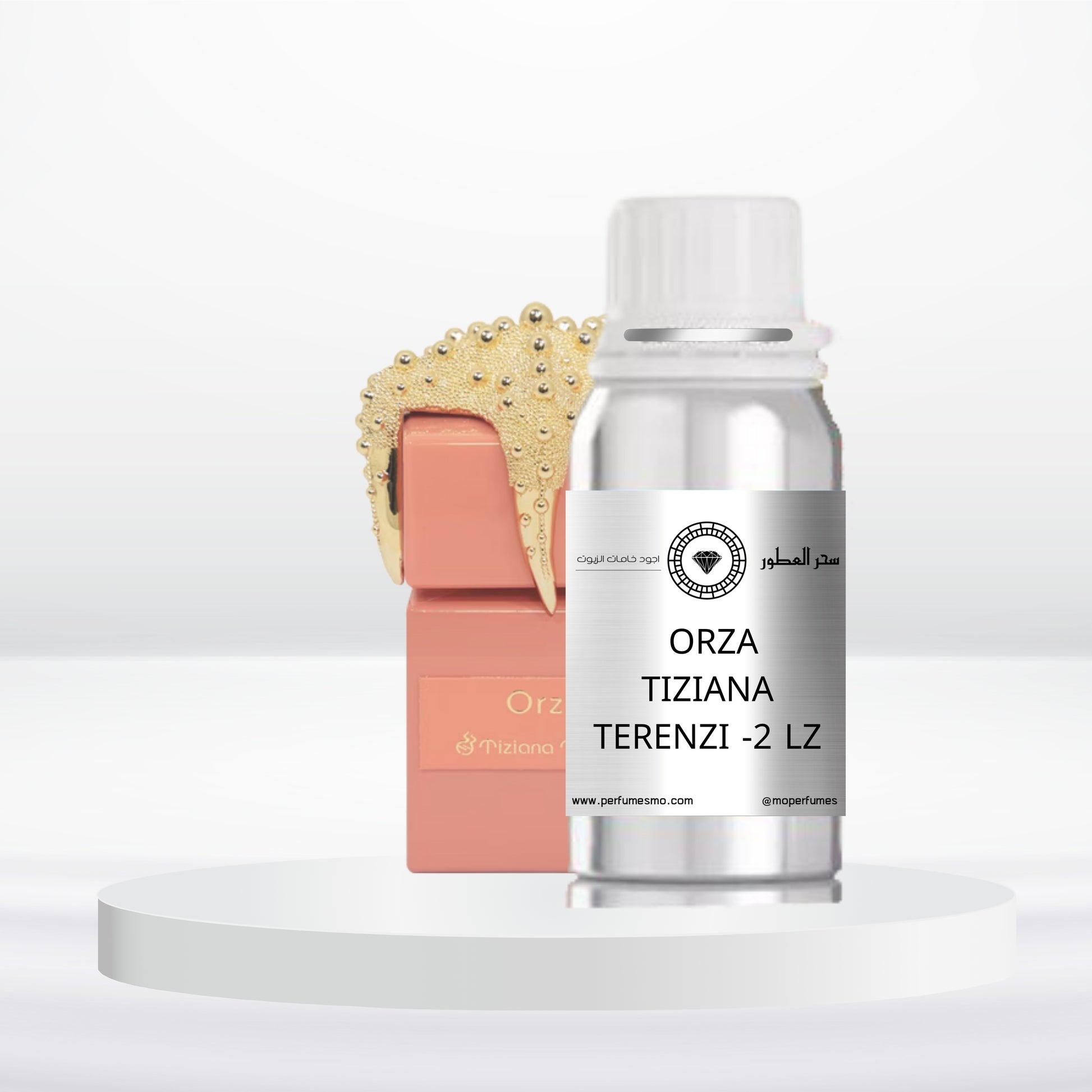 مكونات عطر Orza – Tiziana Terenzi أخضر، ماندارين كالابريا، برقوق من رومانيا، جوز هند، توت بري، توت أسود، ماغنوليا، أوركيد؛ القلب: ياسمين هندي، ورد بلغاري، ليلي-أوف-ذا-فالي؛ القاعدة: كراميل، فانيلا مدغشقر، مسك أبيض، لبان بنزوين، أمبريغريس، خشب الصندل، العنبر.