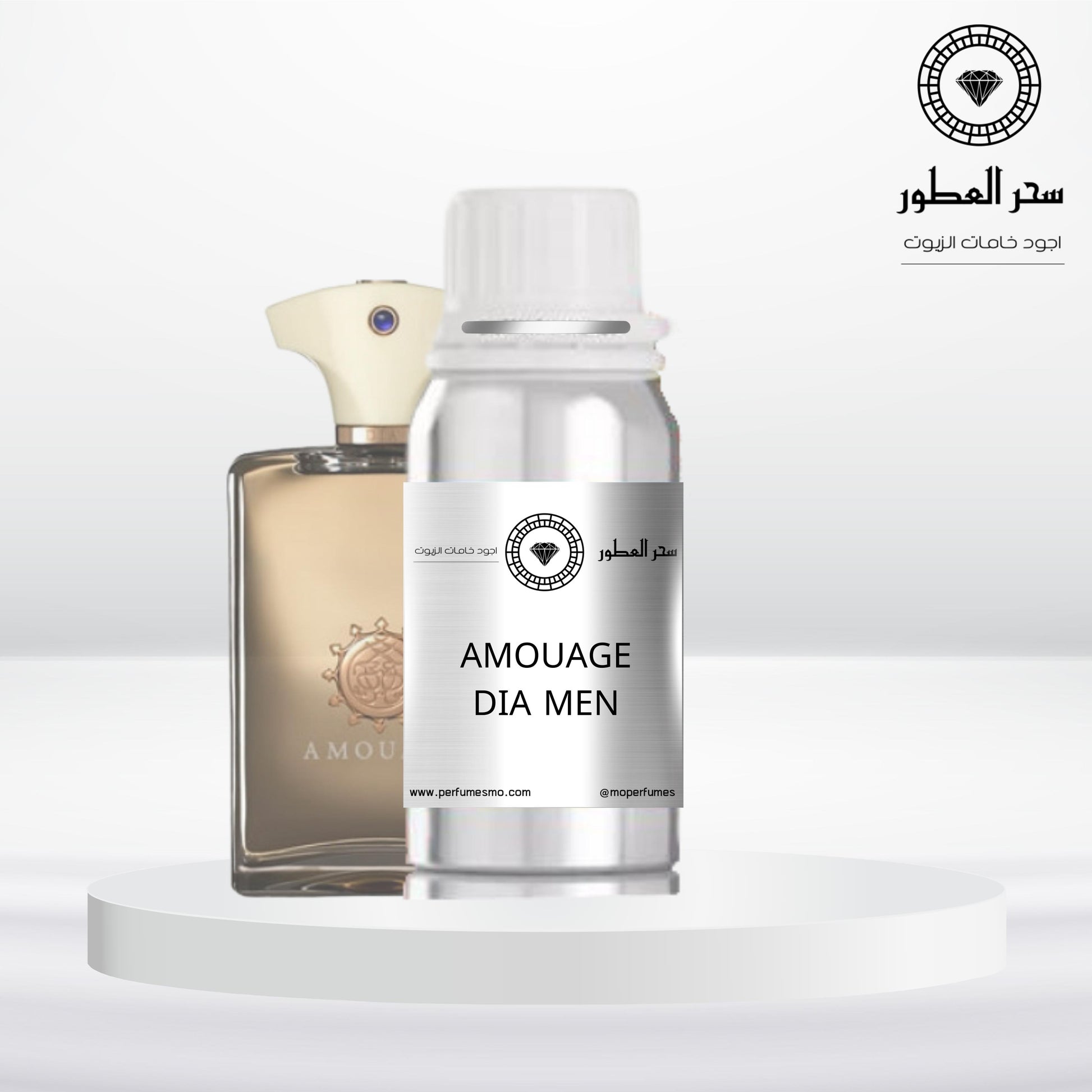 عطر **أمواج ديا للرجال (Amouage Dia Men)** هو عطر خشبي زهري، تتألف مقدمته من البخور، البرتقال المر، والهيل؛ وقلبه من زهرة اليلانغ، البرقوق، وجذور السوسن؛ وقاعدته من الباتشولي، العنبر، خشب الورد البرازيلي، نجيل الهند، والجلد.